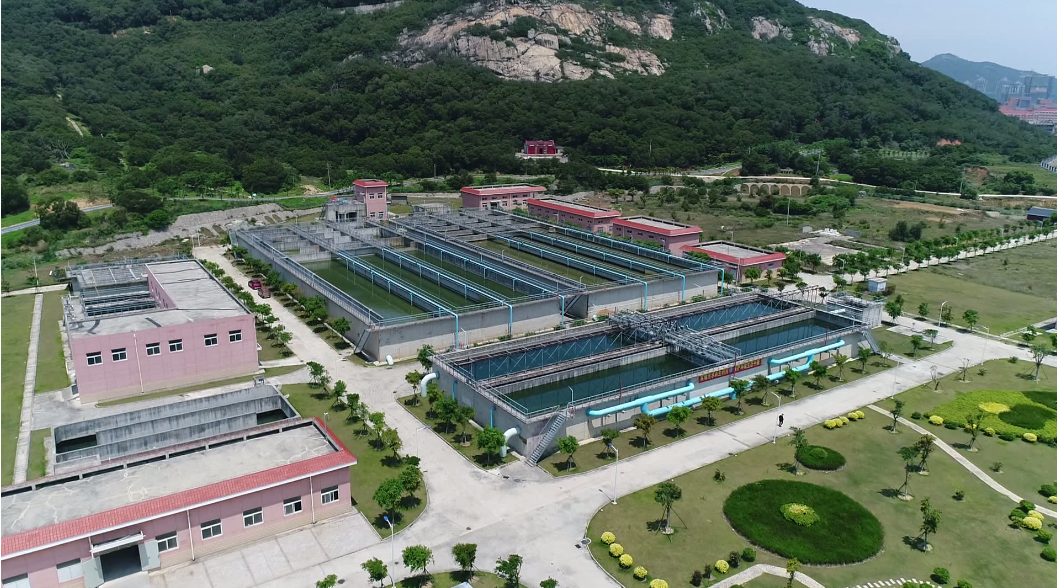 金井湾污水处理厂(一期)、三松再生水厂工程为BOT项目,特许经营期25年。金井湾污水处理厂位于金井湾天大山东南侧山脚,设计总规模污水处理量8.0万吨/日,建设用地76758.59平方米。分二期建设,一期工程设计污水处理规模4.0万吨/日,总投资一亿多元,服务范围辐射金井湾和吉钓港规划组团,服务面积约28平方公里,服务人口约16万人。污水采用预处理+强化A2O池(Carrousel氧化沟)+二沉池+絮凝沉淀+滤池过滤+次氯酸钠消毒处理;污泥经储泥池、调理池浓缩+板框压滤脱水后外运处置,出水标准为一级A。2017年5月正式投入商业运营。